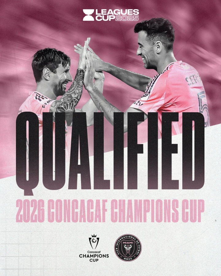 VT直播08月28日讯 联盟杯半决赛,梅西梅开二度,迈阿密国际淘汰奥兰多城晋级决赛。 联盟杯官方晒图表示,迈阿密国际获得了下赛季中北美冠军杯资格。